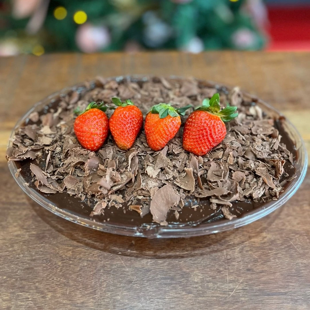 BOLO NA TRAVESSA DE BRIGADEIRO COM MORANGOS NA MASSA DE CHOCOLATE